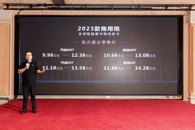2023年5月18日, 长城炮(参数|询价)2023款商用炮正式上市,新车售价区间为9.98-14.28万元。2023款商用炮分为精英型和领航型两个配置版本,分别可选两驱/四驱、标箱/长箱和6MT/8AT车型。新车针对外观和内饰进行了更新调整,同时新增很多提升竞争力的配置,具备“超享驾乘、超强动力、超级安全、超强承载、超卓匠心”五大硬核实力,将成为新时代商务精英首选的事业伙伴、智能助手。