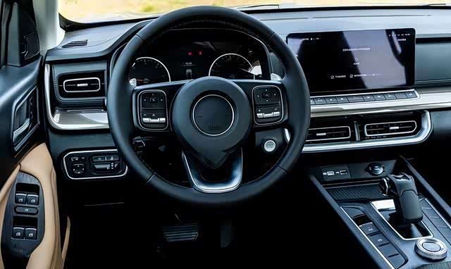 2023款商用炮的内饰设计和配置水平提升最为明显,采用全新简洁科技风格,大面积皮质软包加缝线设计相当简约,整体显现出商务精英的氛围感,较老款车型有着明显的气质提升。新车前排座椅采用电动调节,主驾一键升降带防夹,更有无钥匙进入、一键启动、自动驻车、电动天窗、自动空调、自动大灯、自动雨刮等高阶智能装备,带来舒适便利的驾乘感受。