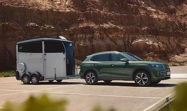 另外还配备了拖车操纵辅助系统,带有拖车稳定装置,全轮驱动的 Tiguan 可以拖曳高达 2300 公斤的重量(制动),最大拖球重量为 100 公斤,车顶也是一样。