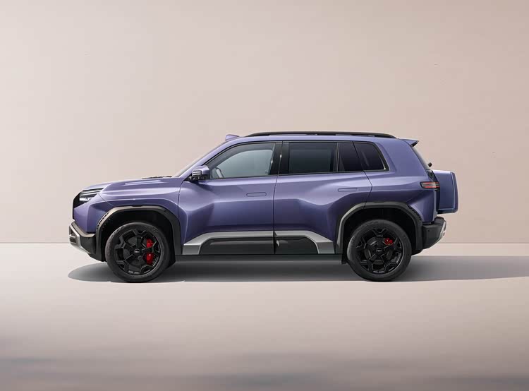 侧面造型方面,车顶线条略带一点弧度,配备有粗壮的行李架,有着比较强的力量感;腰线采用了分段式设计,点缀出了车身侧面的层次感;门把手依然是弹出式设计,能够起到降低风阻的作用;轮眉和侧裙部分设计有粗壮的黑色饰板,进一步增强了力量感;轮毂采用了五幅式熏黑造型,车身比例控制的比较协调。
