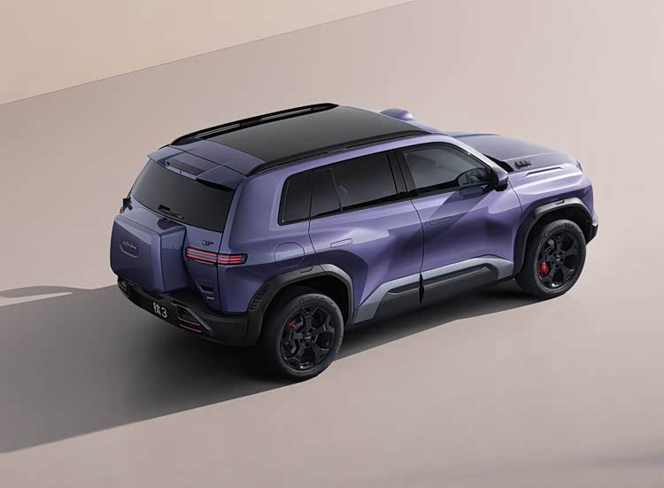 尾部造型方面,车顶配备有小尺寸的扰流板以及高位刹车灯,熏黑的尾灯组造型比较扁平,内部结构有着比较强的立体感;外挂式的小书包也没有缺席,不过内部并非备胎,而是起到了储物槽的作用,可以放置一些零散物品;下包围部分的造型和前保险杠相呼应,同样是硬派气息十足的类型。尾门采用的依然是侧开设计,而且增加了闪充尾标,彰显了独特的身份。