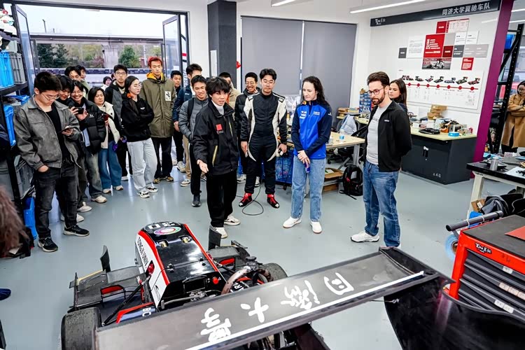 同济大学校园活动吸引了众多对赛车运动及工程充满热情的同学。在现场,不仅有来自福特中国产品策略及产品市场高级总监马乐平和同学们分享关于福特在多年场地和越野赛事中的故事和性能车亲身项目经历,更有来自奥地利Red Bull F1 Academy的年轻女车手Alisha Palmowski分享F1赛车的相关经历——年仅19岁的Alisha来自英国,是奥地利Red Bull青训学院签约的新生代力量,曾在上海站Reverse Grid比赛中上演首秀即夺冠的惊艳表现,今年她将继续代表奥地利Red Bull征战本赛季的F1 Academy赛事。