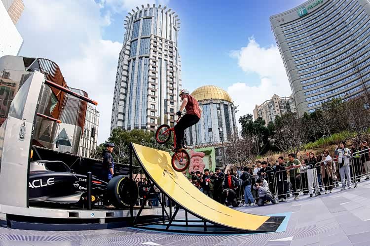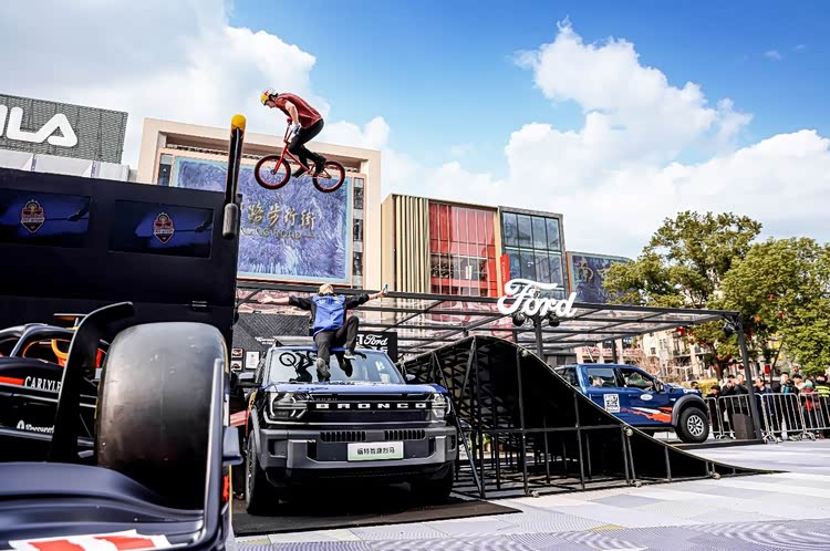 校园之外,南京路世纪广场上举办的“福特性能家族快闪”也在火热进行中。 活动自3月5日启动以来,已吸引大量车迷前来打卡体验。此前令人期待的神秘惊喜环节也终于揭晓:奥地利Red Bull签约的克罗地亚BMX小轮车骑手Marin Rantes,在快闪活动现场先后飞跃Red Bull战车以及车顶举升后高度近2.2米的 福特智趣烈马(参数|询价),将气氛推向高潮。这一勇敢的挑战,不仅是对车手技巧与勇气的极限挑战,更是一场关于团队协作精神的致敬。
