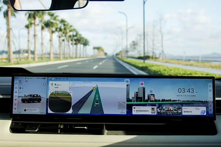 EO的仪表台,你能摸的到的地方都是软的。27英寸的4K大宽屏拉伸了整个内饰的视觉宽度。不仅是窄边框,中间还没有断点。芯片用的是高通8295,反应速度快,主驾看视频,副驾追剧很完美。