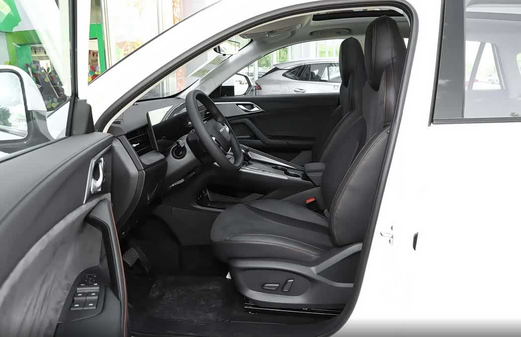荣威D5X DMH在动力方面搭载1.5T发动机+单电机组成的插电式混动系统,其中发动机最大功率为110kW,电动机最大功率为145kW,仅需6.9秒就能实现零百提速,账面参数较为可观。与之匹配的2挡DHT可随着动力来自动调节到相应的挡位,在电动机的加持下,新车起步轻盈、提速快,红绿灯那阶段能很快蹿出去,不耽误后方车辆起步,电动踏板调校偏灵敏,踩下之后动力就能很好输出,全力加速过程中还能获得小小的推背感。该款车的能量回收模式有多种选项给到,油改电的朋友也能很好适应,值得一提的是,全系标配360°全景影像,新手司机在陌生环境倒车也能增强驾控信心,在同价位车型中还是比较少见的,方向盘带电动助力,支持无级调节,轻盈模式下转弯、并线还是挺容易的。对了,新车还全系标配双独立悬挂,通过大起伏颠簸路段,能感受到该款车底盘调校偏紧致,没有多余的回弹传递到车内,偏运动化的调校让我印象深刻。