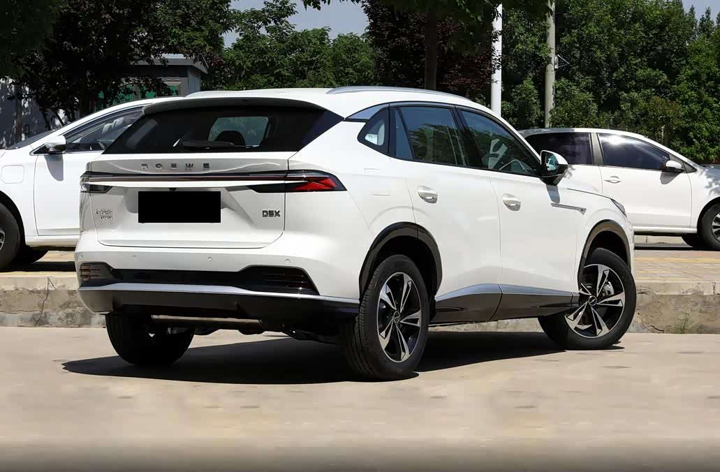 新车侧面通过简洁的线条修饰,看上去一点儿也不简单,根据版本不同,撞色轮毂有18/19英寸之分,在黑色轮眉的加持下,带来的视觉冲击力更强。来到荣威D5X DMH的尾部,多根亮银色饰条点缀其中,为车辆增加了几分精致感,熏黑的后包围更是进一步提升尾部视觉高度。