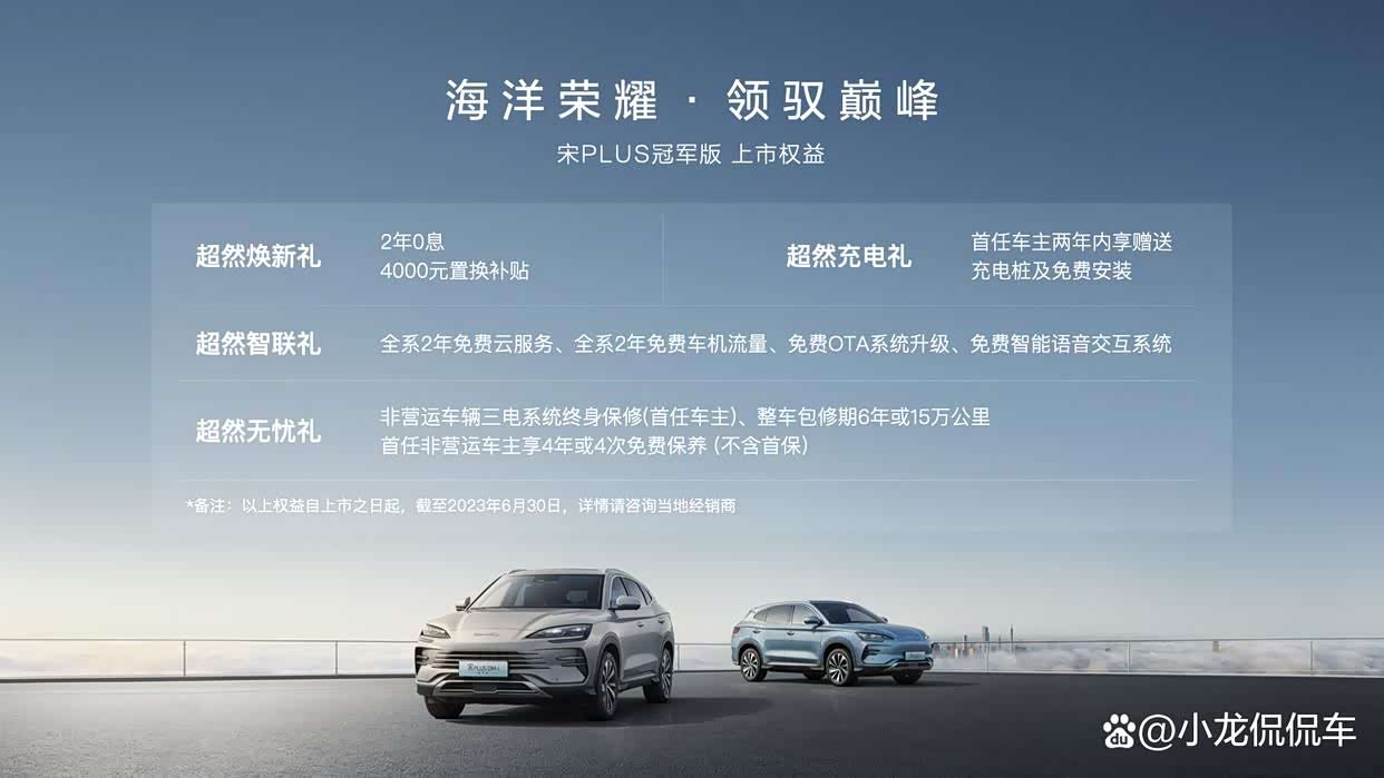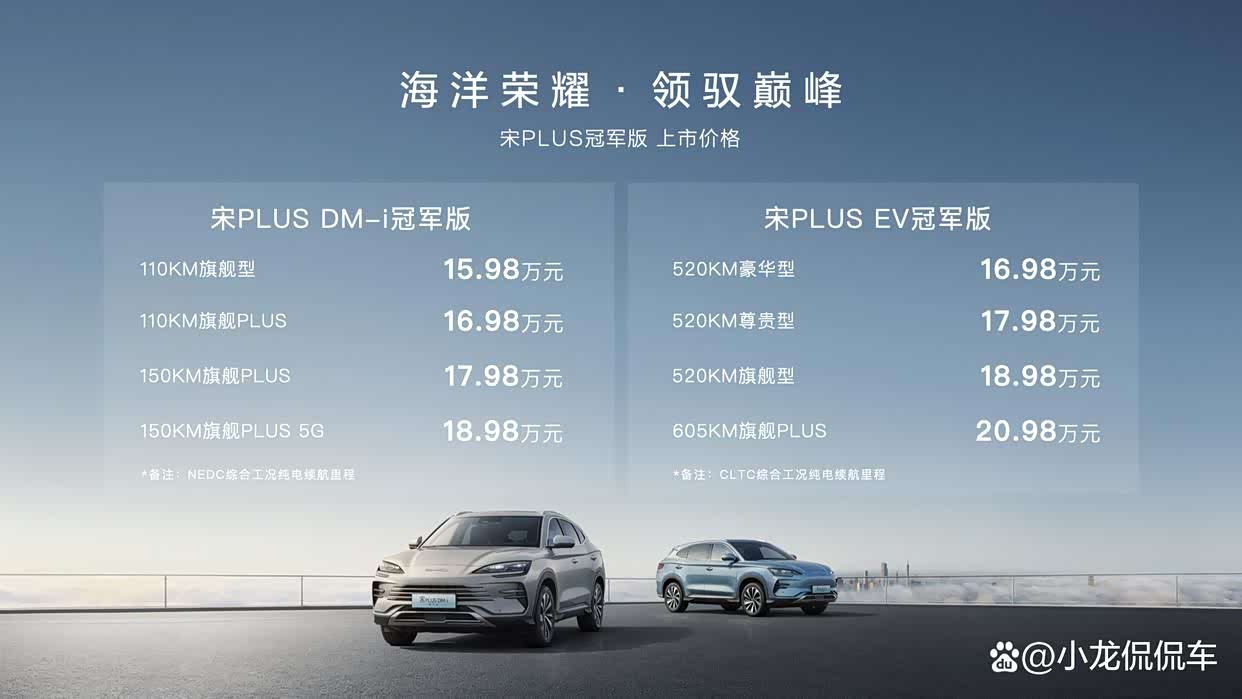 总结:以上便是宋PLUS冠军版这款新车的一些介绍了,总体来说宋PLUS冠军版的此次改款进步比较明显,除了重新设计了外观以外,最为关键的是新款车型将动力部分进行了升级,经过整体升级后宋PLUS冠军版在同级别或同价位车型中将更具竞争力,所以我个人觉得宋PLUS冠军版上市后又会再一次掀起SUV新风暴。
