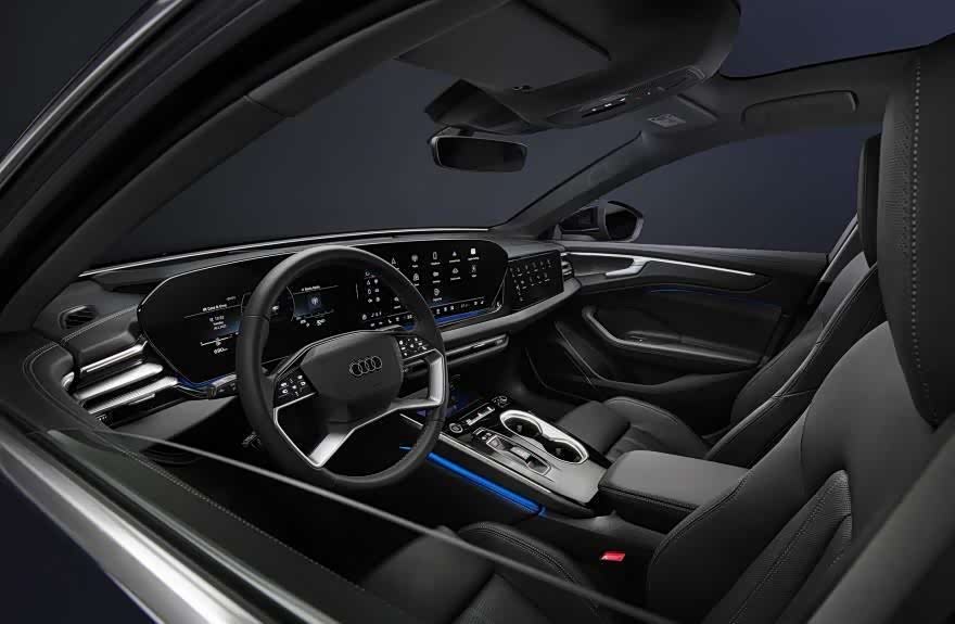 拉开车门,第一眼就会被中控台的三块巨屏吸引——仪表盘、中控屏、副驾娱乐屏一字排开,科技感直接拉满!副驾的屏幕甚至能刷视频,堵车时副驾再也不会喊无聊了。物理按键?奥迪这次玩得更绝——空调、导航全交给语音或手势控制,喊一声“嗨,奥迪”就能调温度,简直就是科幻片里的操作!