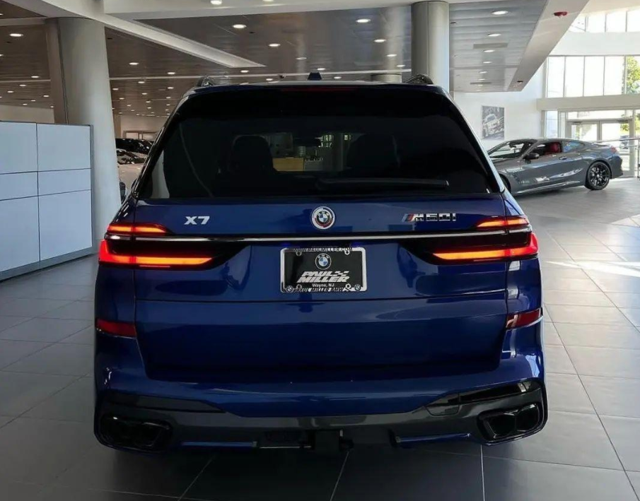 尾部新款宝马X7的变化同样明显,两侧尾灯组采用了全新的“3D立体悬浮LED尾灯”,中间一条银色装饰条还让尾灯组形成了分体式的视觉效果,而且再经过熏黑处理之后,视觉效果极强。下方运用了较大尺寸的黑色包围和双边共双出排气,尾部整体造型既饱满又动感。