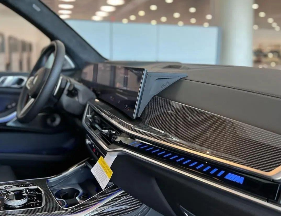 内饰方面,新款宝马X7的变化同样明显,尤其是一体式悬浮曲面屏的加入,进一步提升了新车的科技氛围,由12.3英寸数字仪表盘和14.9英寸中控显示屏组成,同时车机系统也升级成了iDrive8.0,并支持宝马最新的BMW智能个人助理、无线Apple CarPlay、BMW数字钥匙Plus等功能。