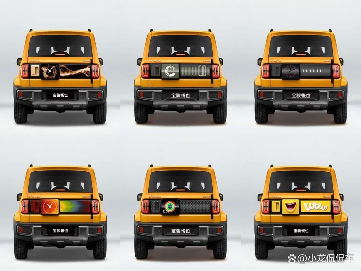 而且除了外观设计外观,宝骏悦也还会提供很多不同的潮创方案,这款车本身的无腰线、无轮眉设计,天生方便用来潮创升级,可轻松定制化。在车尾,宝骏悦也还融入了Apple watch的结构,搭载行业首创的Car-watch,车尾表屏可显示文字、图片或视频不同信息,比如心情好、想交朋友的时候,就能用表屏放啥开心的图案和联系方式,轻松交到新朋友,成为社交利器。