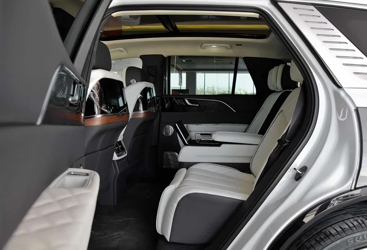 2021款 旗·领 四座版的后排座位是独立的支撑着电调,配备了空调出风口、后侧隐私玻璃、 后排安全气囊等,后部空间比较充足,完全不会有挤人的感觉。