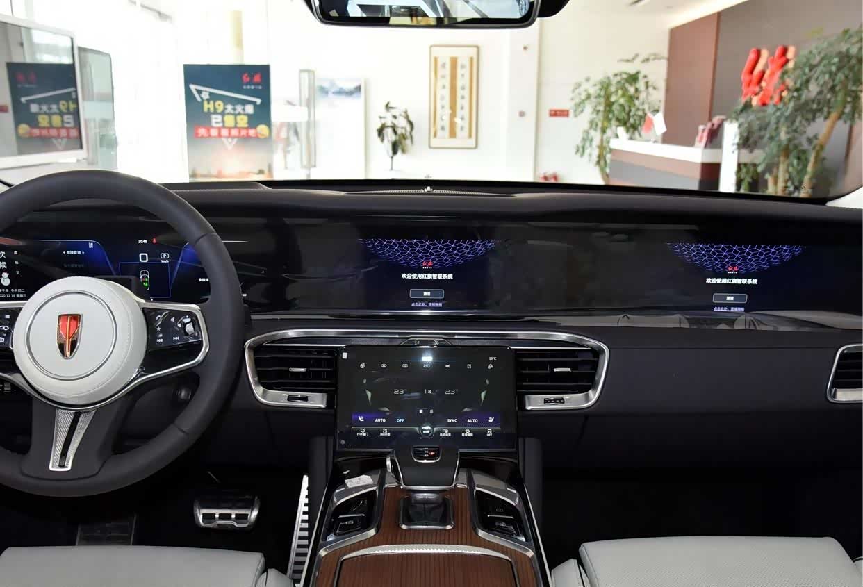 2021款 旗·领 四座版的三辐式的多功能方向盘采用皮质材料,搭配丰富的多功能按钮,大大方便了行车的操控。同时还支持方向盘四向电动调节、方向盘加热、方向盘记忆功能。12.3寸的全液晶仪表盘,样式独特,接口漂亮,而且的功能齐全。