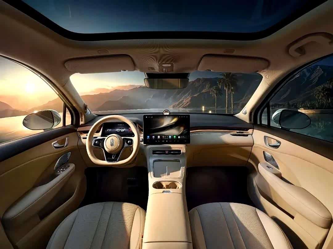 尚界H5的车内设计走的是现在非常流行的简约科技风,整个中控台看起来特别干净利落,没那么多乱七八糟的实体按钮,大部分功能都集成到了中间那个大屏幕里。