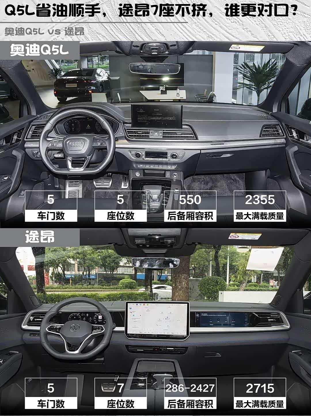 Q5L省油顺手,途昂7座不挤,谁更对口?