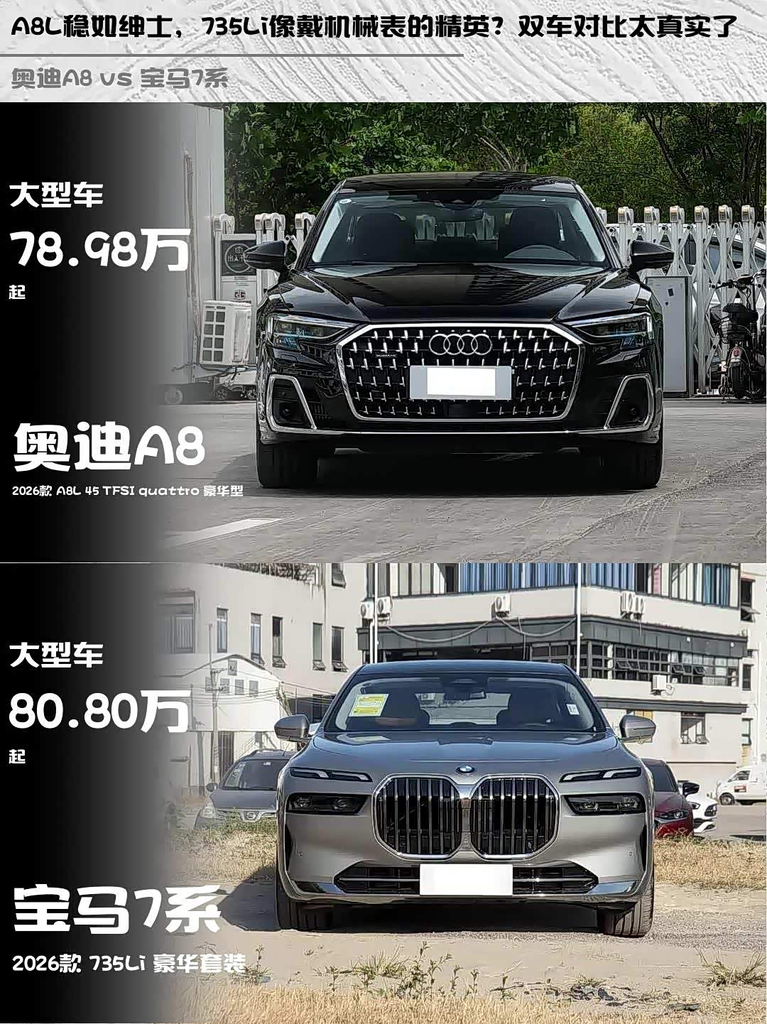 车家号·0浏览·2026-03-14 08:32 · 北京最近在纠结 奥迪A8L(参数|询价)和宝马7系的朋友看过来!作为深度体验过两台车的车主,今天就从细节出发聊聊2026款A8L 45 TFSI quattro豪华型 vs 735Li豪华套装的真实对比感受✨