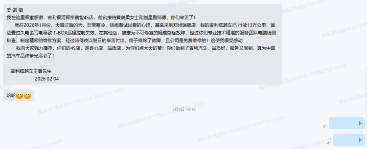 一次免费维修、十几分钟解决问题、无需更换昂贵配件——黄先生的事不是特例。在吉利1000多家授权服务站里,类似的技术支援每天都在发生。对于车主来说,售后服务的核心不是态度多好,而是问题能不能被真正解决。从这个角度看,吉利做到了。