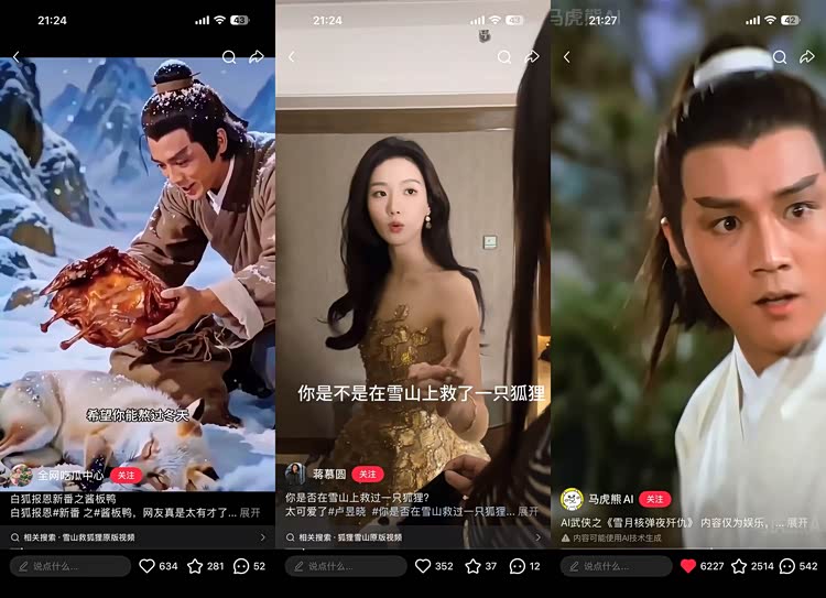 ▲不同版本的「雪山救狐」|来源见图片下方,部分为原视频转发,最初上传者已不可考