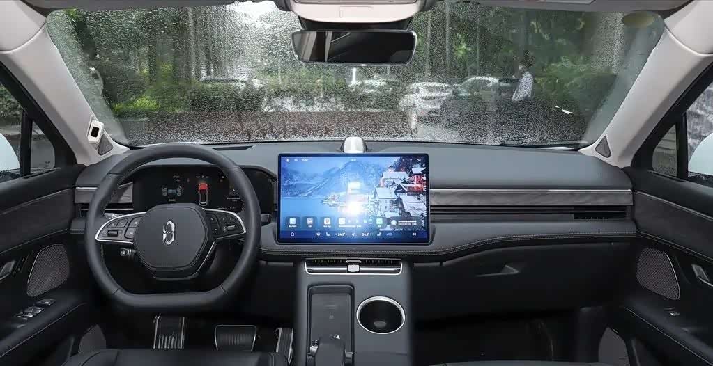 内饰设计上,问界M5 EV延续了AITO家族的简洁、纯净风格。中控台由一块12.8英寸的悬浮触控屏和10.25英寸的全液晶仪表盘组成,形成L型视觉区域,共同搭载HarmonyOS 3系统,提供出色的智能交互体验,如超级桌面、智慧语音操作等。