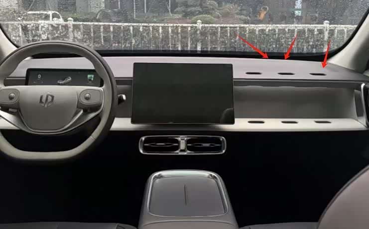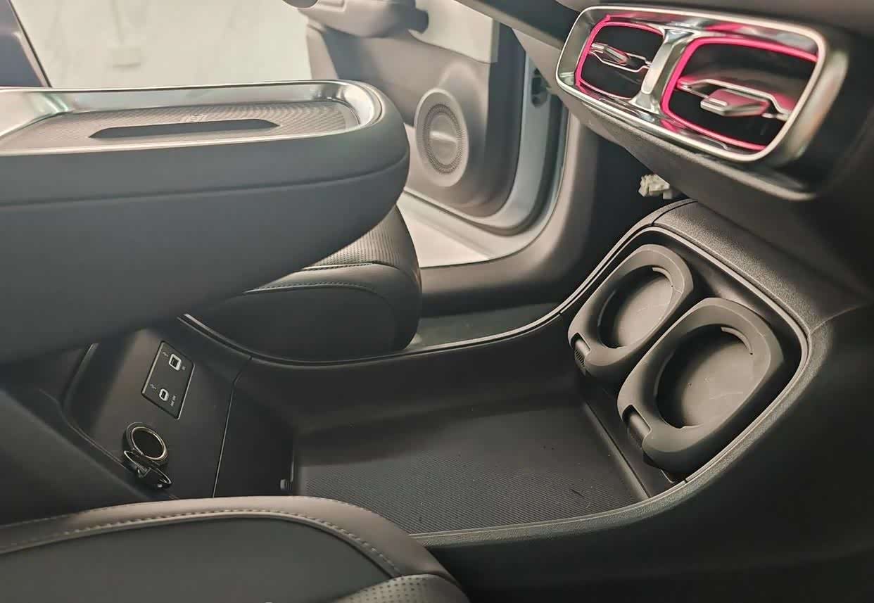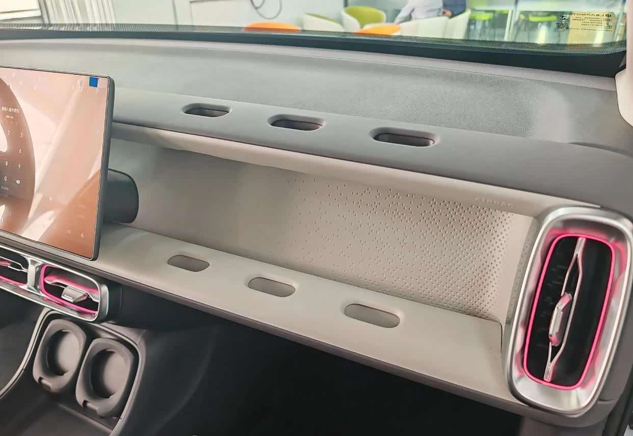 此外,副驾区域也颇具亮点。这里设有六个椭圆形的拓展孔,上下各三个。这种设计无疑增加了车辆的可玩性和拓展性。从曝光图片来看,已经可以看到一个嵌入的手机支架和一个折叠小桌板。未来是否会有更多组合配件的推出,例如平板电脑架、水杯架乃至茶盘架等,令人期待。