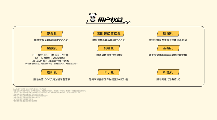 从设计理念来看,元气熊的定位非常清晰:不追求参数上的惊艳,而是围绕真实使用场景,把每一处功能做到实用、好用。3.99万元起的限时售价(2026年3月31日前下单可享现金补贴10000元,叠加置换补贴2000元),配合210公里续航、30分钟快充,加上手机支架、外卖挂钩等懂用户的设计,让它在5万级市场中成为真正解决痛点的选择。对于每天要在城市中穿行的年轻人来说,好停、好开、好用的车,才是代步工具该有的样子——而熊猫mini元气熊,恰好满足了这些期待。