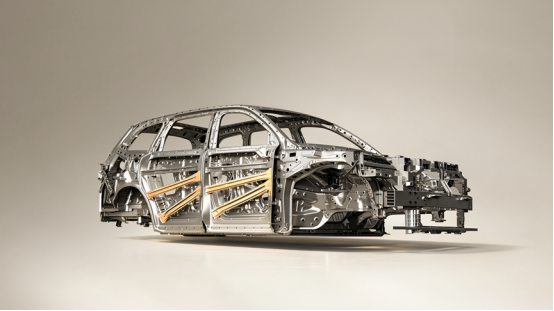 先看被动安全。正面100%刚性碰撞、相对速度100km/h的正面50%碰撞,这是C-NCAP的常规项目。华境S的测试结果显示:驾驶舱保持完整,A/B柱无明显变形,碰撞后车门正常开启,安全气囊精准弹开。用大白话讲就是,真撞了,车里的人有空间活,而且能自己开门跑。这成绩单背后是一套下了血本的材料方案:车身吸能区采用铝合金与高强钢组合,乘员舱用上与宝钢共创并行业首发的1500MPa一体化热成型前地板骨架,1500MPa一体式热成型门环,侧门防撞梁首次规模化应用2000MPa超高强钢,整车高强钢占比超85%。