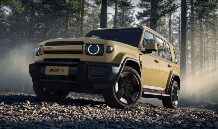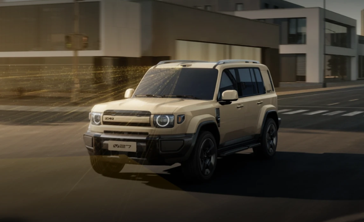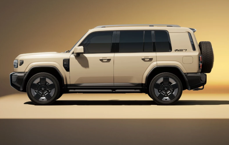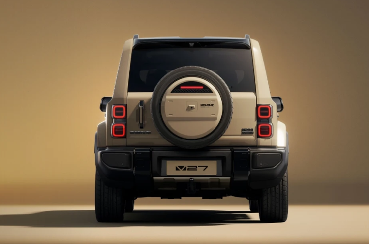 外观上,iCAR V27采用了“方盒子”造型,椭圆形大灯搭配粗壮的前保险杠,车身线条方正硬朗,尾部还配备了“小书包”。新车的三围分别是4909(含备胎5055)/1976/1855(带行李架1894mm,轴距为2910mm。
