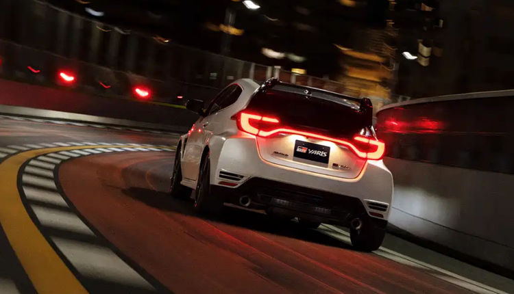 车身侧面保持GR YARIS标志性的宽体设计,紧绷的线条充满力量感,确保了出色的弯道灵活性。前后轮眉的宽体造型与外扩腰线相结合,既为容纳宽胎提供空间,也优化了侧面气流。车尾设计延续战斗风格,车顶延伸的尾翼、贯穿式LED尾灯及双边共两出排气,彰显其性能身份,下包围的扩散器设计可有效梳理底部气流,提升高速行驶稳定性。
