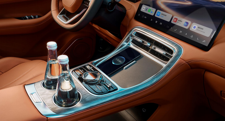 车辆在细节设计上同样用心,视觉识别电尾门可精准识别动作,无需反复踢脚即可开启,使用更便捷。50W风冷无线快充带有主动散热功能,充电速度快且不易过热,下车时还会提醒用户带走手机。内饰采用生态麂皮与木纹饰板,触感柔软,质感温和,让座舱更具居家氛围。