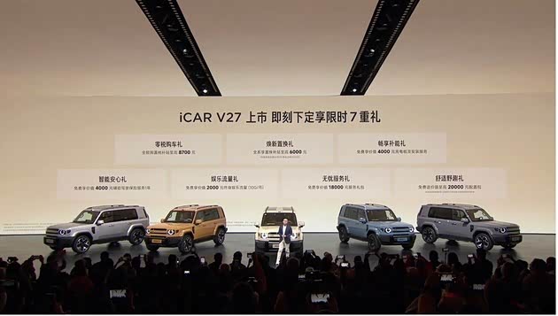 2026年3月13日,在新能源硬派SUV赛道持续升温的当下,奇瑞集团旗下年轻化品牌iCAR正式推出品牌首款增程动力车型—— iCAR V27(参数|询价)。新车定位为中大型SUV,共推出3款车型,售价区间为16.98-19.68万元,同时搭载地平线征程®6P大算力芯片和HSD(Horizon SuperDrive™,全场景辅助驾驶系统)。动力方面将会采用增程系统,并提供双电机四驱,全系标配高通8295P芯片并提供超级猎鹰700+辅助驾驶系统。