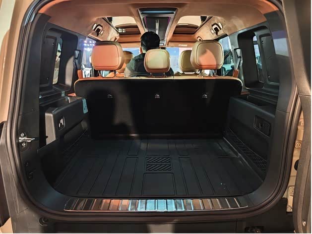 储物空间方面,常规后备箱容积达715L,可轻松容纳11个20寸登机箱,下层还隐藏了40L储物盒,适合存放私密物品或工具。后排座椅放倒后,储物空间可扩展至1818L,足以应对搬家式露营或大件物品运输。