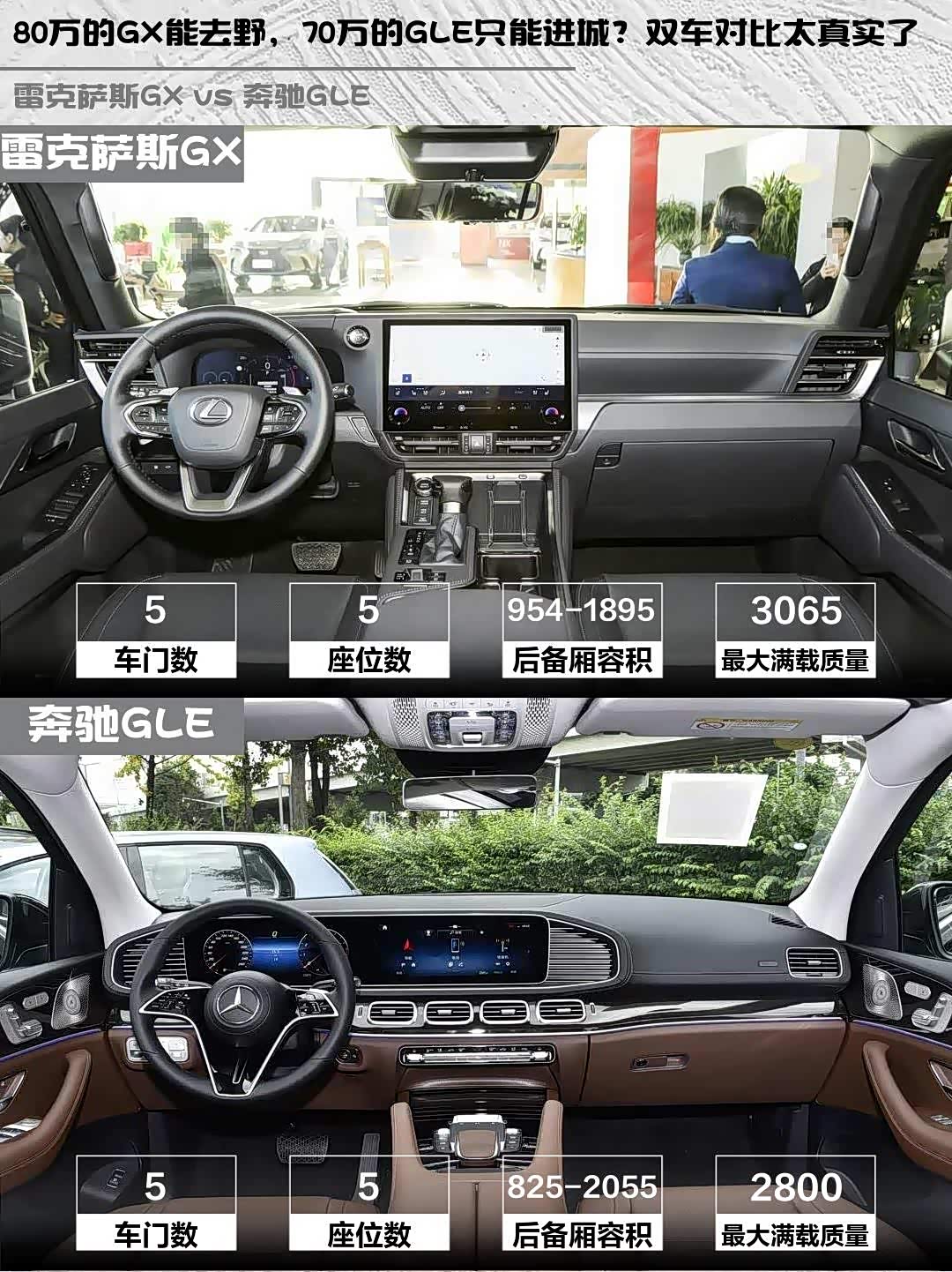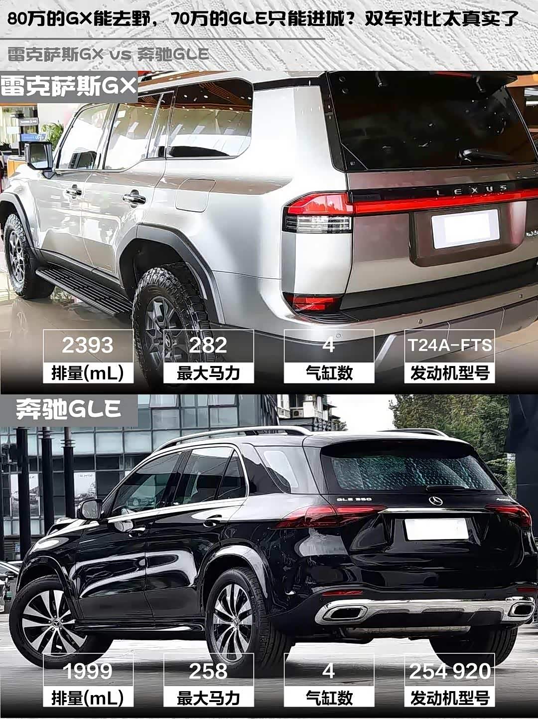 要硬核越野+混动省油+日系耐用性,选雷克萨斯GX;要都市豪华感+品牌溢价+舒适通勤,选奔驰GLE。个人觉得GX更适合当第二台车去野,GLE则是面子里子兼顾的万能选项。你们会pick哪台?