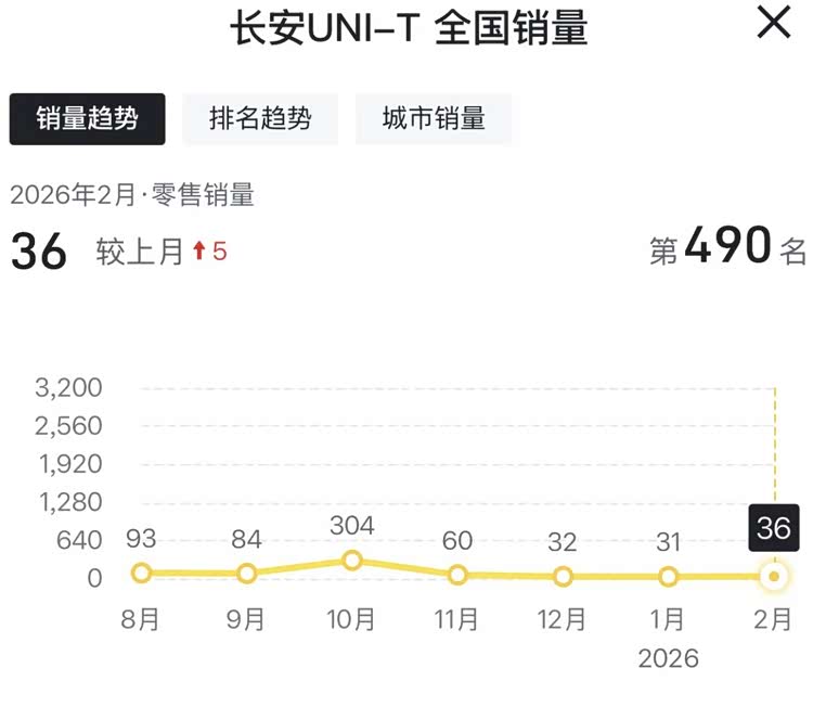 从众多消费者反馈来看,长安UNI系列车型长时间不OTA升级成了通病,而这似乎又与长安UNI系列销量持续低迷有关。例如,第三方平台显示,今年2月UNI- T销量仅为36辆,UNI- K仅为可怜的7辆,UNI- V算是UNI系列中最好的,2864辆。因为销量太低,长安汽车出于成本考虑减少对UNI系列的投入,把OTA开发资源集中于主销车型。