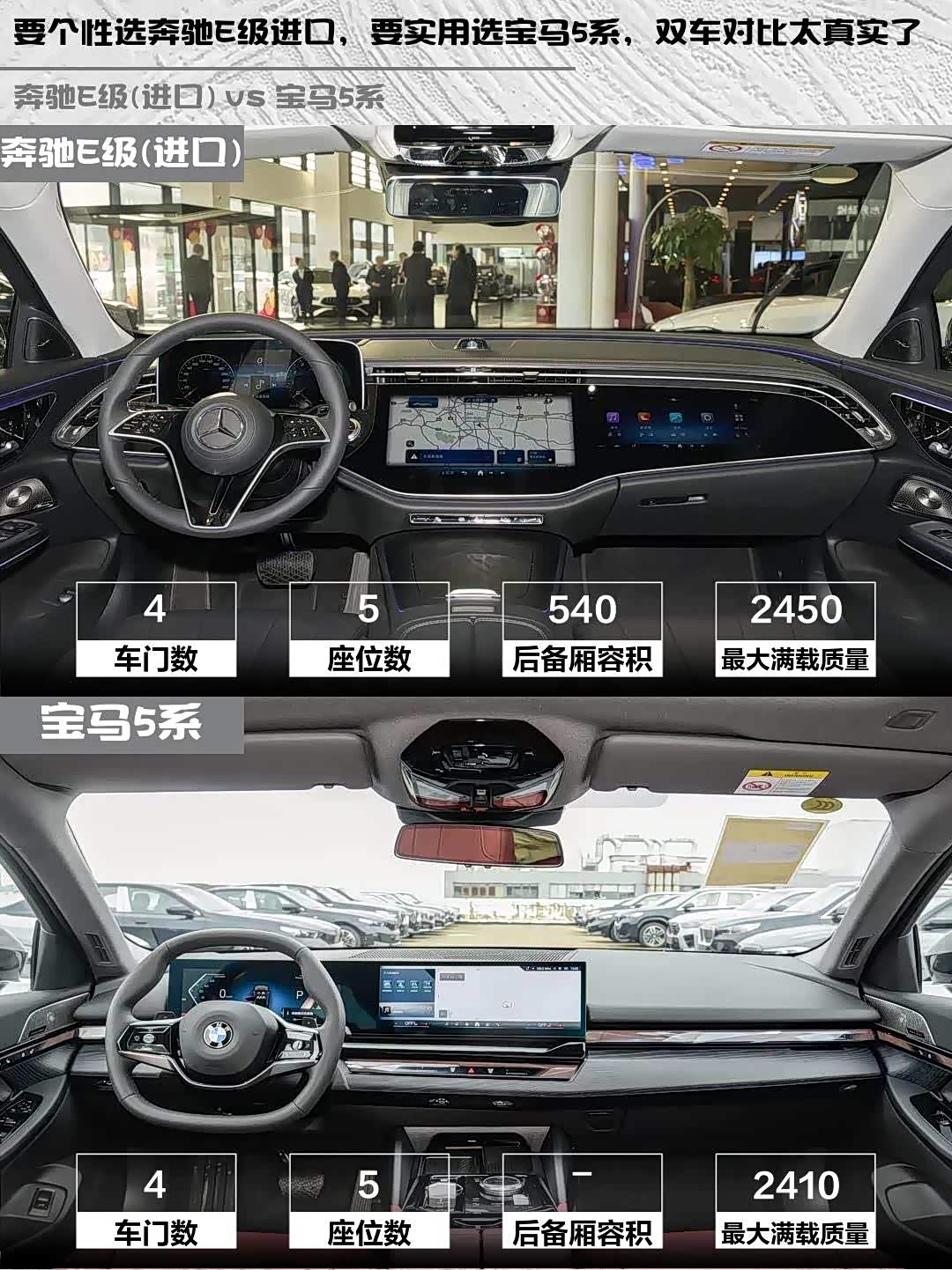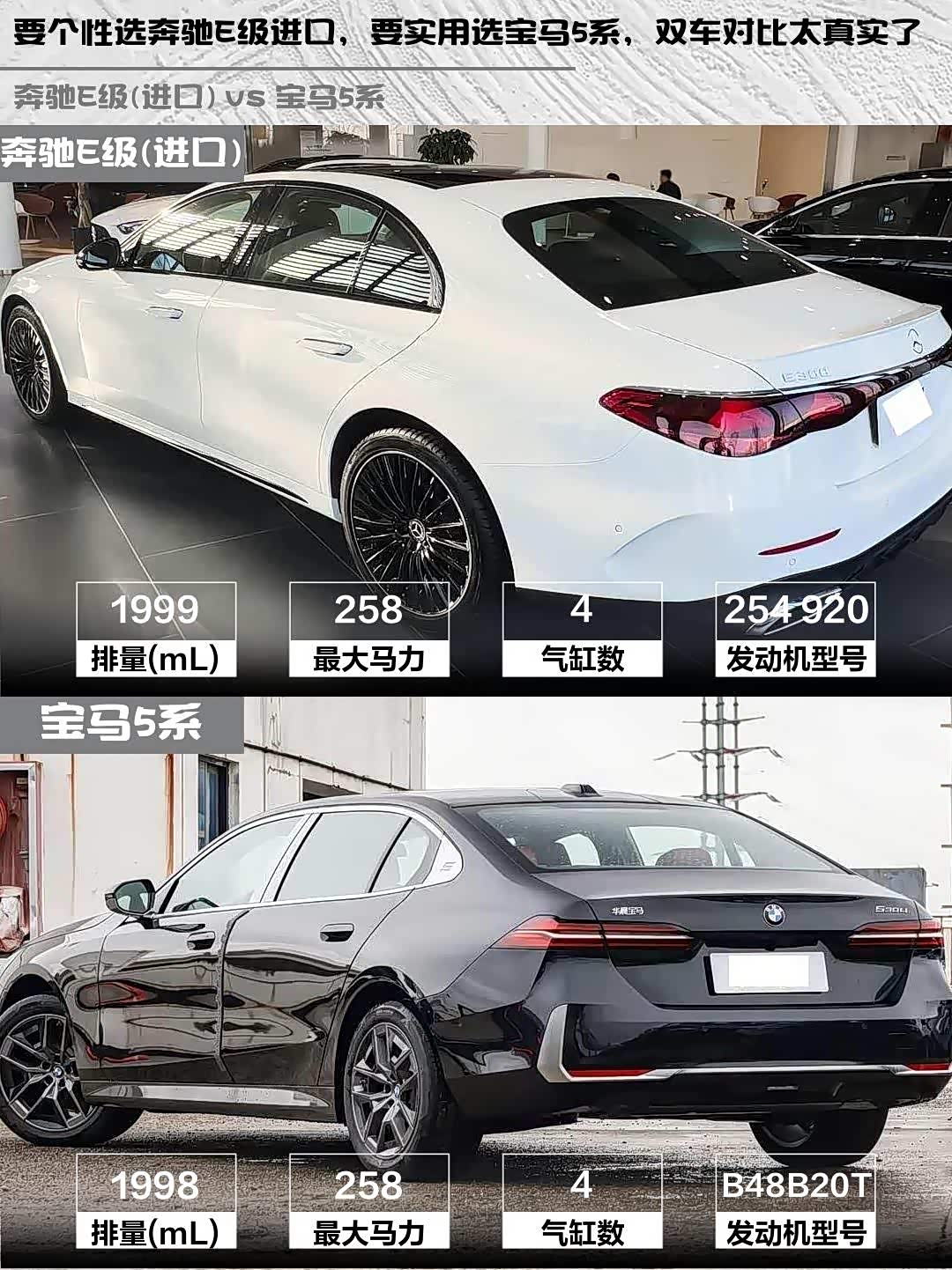 要个性选奔驰E级(进口),无框车门+进口身份回头率超高;要均衡选宝马5系,空间和油耗更适合家用。不过奔驰的怀挡用习惯后真香,等红灯时右手终于能安心搭在扶手箱上了~