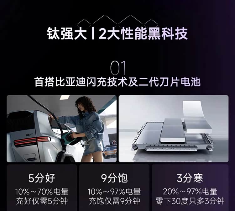 钛3闪充版用的是比亚迪新的闪充技术,需要配合比亚迪的闪充桩才能发挥最大速度。普通快充桩上,它就是一台普通的800V车型,充电速度和市面上主流快充车型没什么区别。