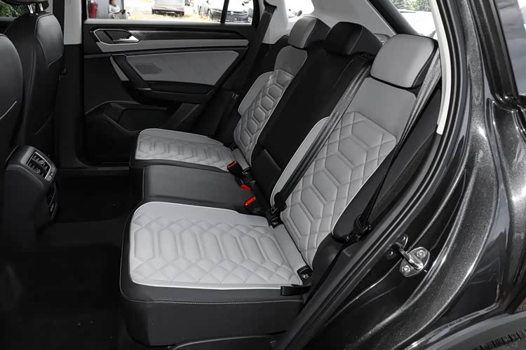先说说大众探岳,1.5T版本车宽1860mm,二排空间宽度1510mm,座椅总宽度1210mm,最头疼的是地台凸起有160mm。我坐过朋友的探岳,后排装完儿童安全座椅,剩下的空间只能勉强坐一个成年人,肩膀得往里缩,腿也伸不开;中间再坐一个人,脚只能踮着,全程下来腿麻腰酸。
