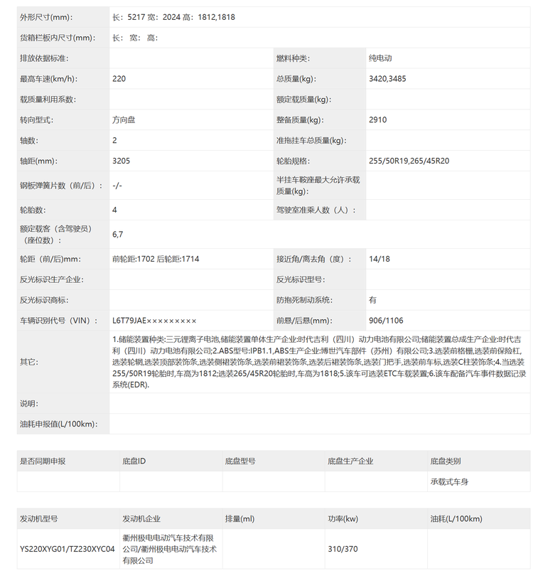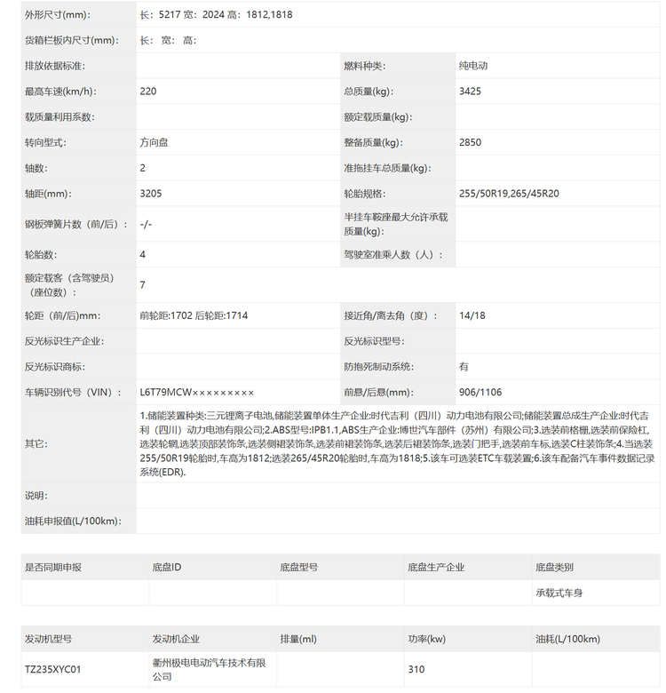 尺寸方面,新车的长宽高分别是5217/2024/1812(1818)mm,轴距为3205mm,定位是中大型MPV,轮胎方面有255/50 R19以及265/45 R20两种规格可选,座椅方面本次申报了6座和7座布局,未来可能还会提供四座版可选。