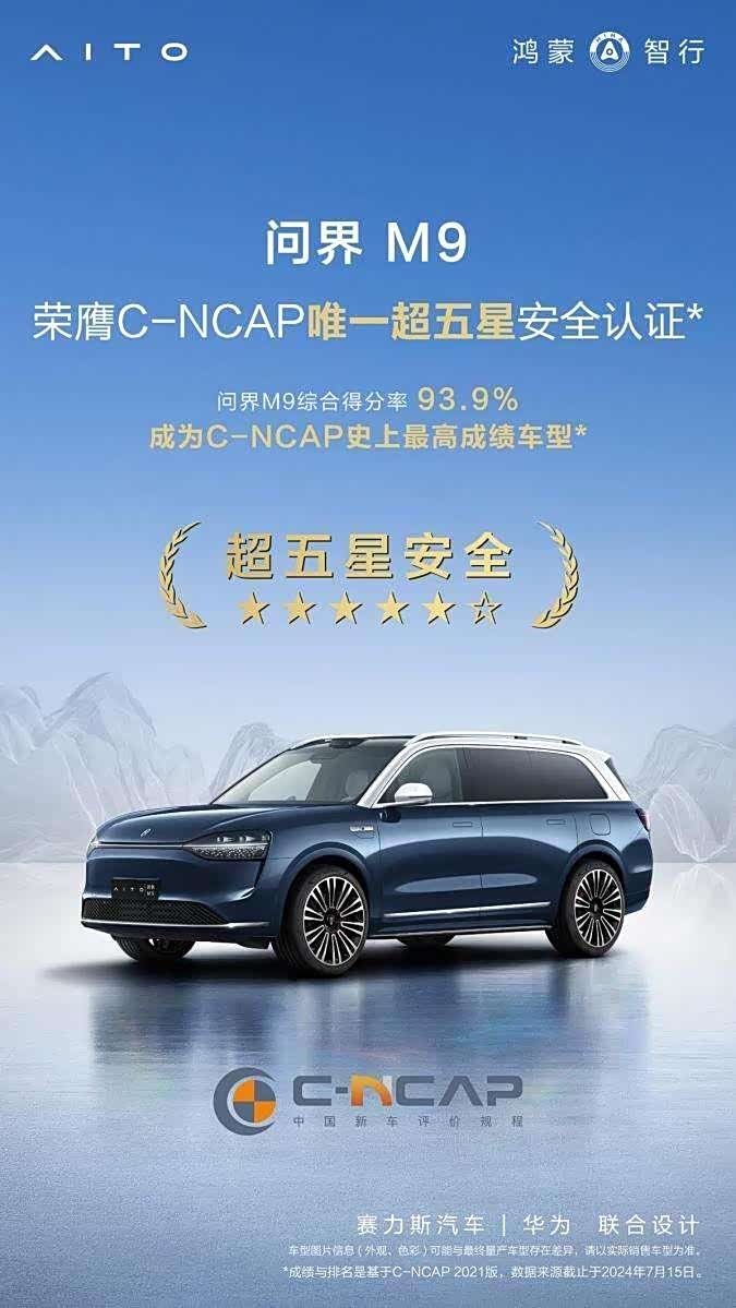 问界M9能够在C-NCAP的严格且全面的评测标准下荣获如此高的殊荣,充分证明了其在车辆安全性能方面的出色实力。C-NCAP的评测标准涵盖了乘员保护、行人保护以及主动安全等多个方面,对车辆进行全方位的安全性能测试。
