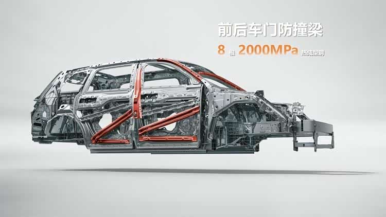 更值得一提的是,问界M9在车身设计中细致入微地考虑了安全防护。例如,在车身共12处采用2000MPa核潜艇级热成型钢,同时在门槛梁处设置11个防护腔体,这些设计能够高效吸收侧面碰撞产生的能量,为车内乘员和车底电池提供全方位的安全保障。