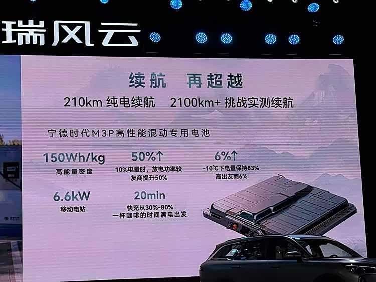 新车详细配置方面,依旧配备了奇瑞品牌的C-DM插电式混动系统。相较于现有车型,新款车进行了多项升级,包括采用更先进的3挡DHT变速箱(较之前单挡DHT有所提升)、双电机配置(取代了单电机),以及配备了容量为34.46kWh的磷酸铁锂电池(由宁德时代供应)。