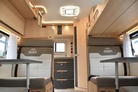 今天我们要介绍的是隆翠凯歌系列的一款大额头无拓展房车——隆翠C610旅行版。这款房车是基于国六标准的依维柯底盘精心打造,内饰布局新颖独特。它的会客区设计巧妙多变,配备了4张单人床铺和一张额头双人床,总共可以满足6人的睡眠需求。整车内饰简约高雅,空间利用极其合理,选装配置丰富多样,既实用又美观,非常符合年轻人的审美需求。接下来,我们一起来详细了解它的更多细节。