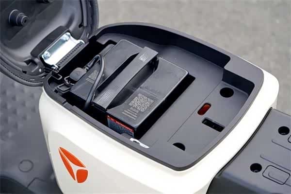 在座椅成功解锁并翻开后,将其从车身上移开,这将暴露出下方的电池与充电接口。