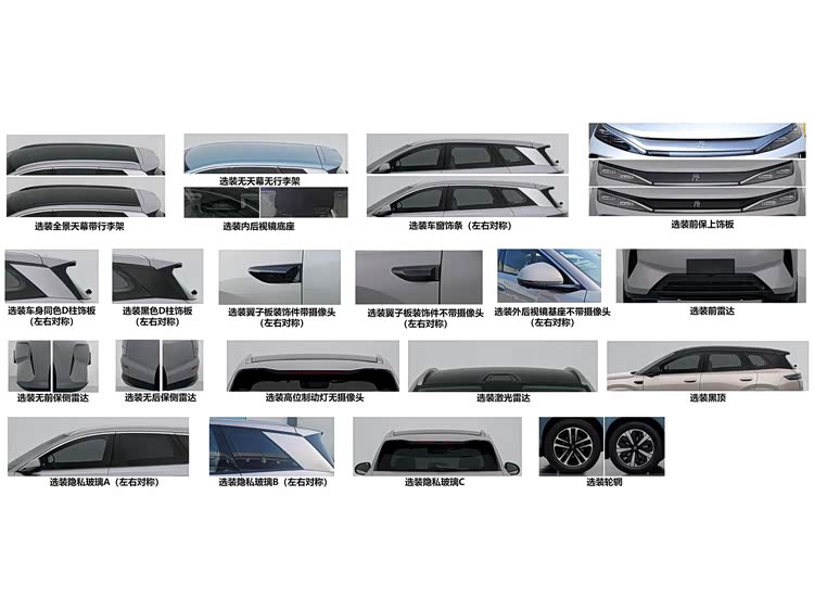 而在其它方面,从申报信息可以获悉,全新比亚迪元PLUS将采用全新的动力电机,搭载两台最大输出分别为200千瓦、240千瓦的后置单电机,要比现款动力强劲不少。而在电池方面,该车也将搭载最新的第二代刀片电池,预计会有更好的补能速度。除此以外,该车也将支持多项选装配置,除了大家常见的外观选装配置以外,该车也将提供车头雷达 、车顶激光雷达等配置,预计会有更好的智驾体验。