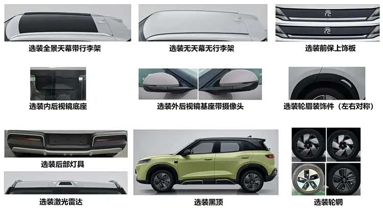 虽然新款比亚迪元UP的外观变化不是特别大,但是在其它方面确实有不小的改动。该车将搭载全新的电机动力,搭载两台最大功率分别为100千瓦、120千瓦的电机,动力表现更加均衡。而在其它选装配置方面,该车不仅支持选装全景天窗、前包围饰板样式、轮眉装、双色车身等个性化饰件,还支持选装车顶激光雷达、三视摄像头等功能性配置,看来该车的智驾水平也有望得到进一步提升。如果不出意外,此次申报的新款比亚迪元UP,大概率会成为2026款版本上市,大家觉得怎么样?