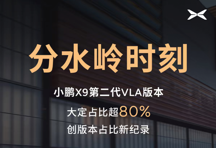 而这样的期待,已经变成了真实的订单数据:第二代VLA发布后,小鹏X9的大定订单里,搭载第二代VLA的版本占比直接冲到80%以上。