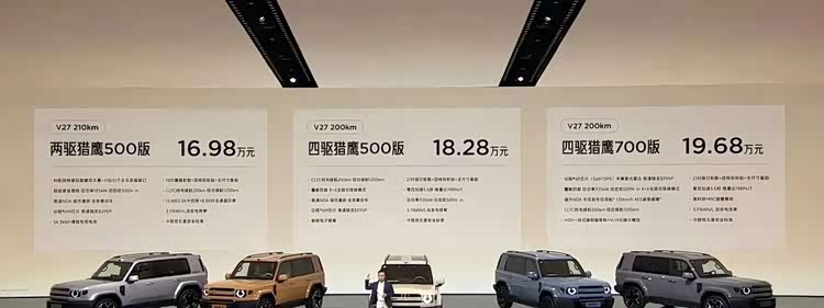 但现在,它真的来了,这台车就是刚上市的 iCAR V27(参数|询价),官方指导价16.98-19.68万元,共三个配置,官方定位“家庭新硬派SUV”。