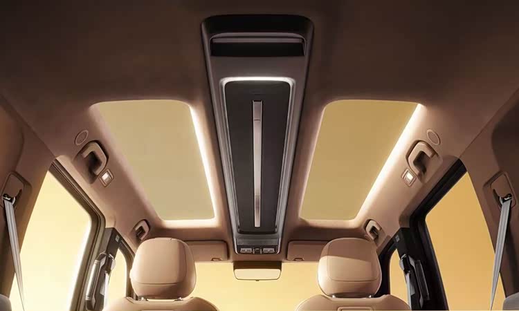新车标配前排手机无线充电、冷暖扶手箱、15 扬声器音响、方向盘加热、前排座椅电动调节 / 加热 / 通风,二排座椅也配备加热功能,首创的星际舷窗双天幕拥有 99.9% 紫外线过滤能力,“天空岛” 顶棚的漫反射氛围灯更营造出沉浸式的驾乘体验,69.9% 的空间利用率与多种座椅组合方案,让大空间成为家用刚需的核心支撑。