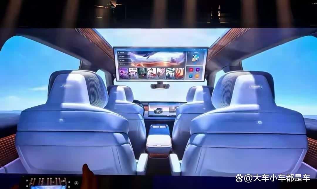 坐进车内,极简设计风格让人眼前一亮。中控台配备大尺寸双联屏,支持多屏联动和智能语音控制,操作便捷又充满科技感。车内采用六座布局,第二排配备独立航空座椅 ,副驾还支持“女王座椅”,座椅的材质柔软舒适,各种调节功能齐全,再加上全景天幕与智能氛围照明系统 ,营造出了豪华又温馨的乘坐环境,不管是商务出行还是家庭出游,都能让人感到无比惬意。