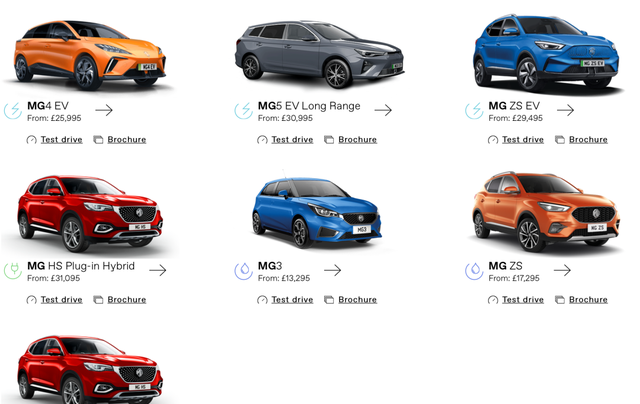 名爵在欧洲的车型种类覆盖了燃油、插混和纯电。