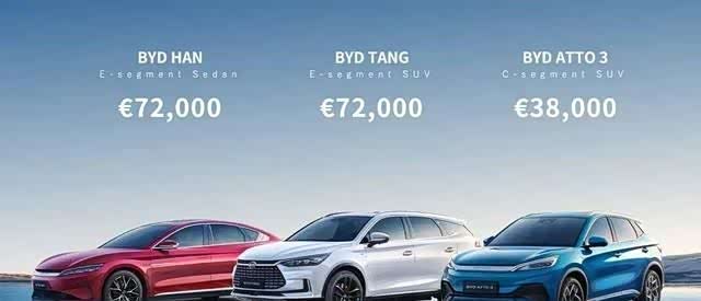 比亚迪三款即将在欧洲销售的车型已公布预售价格。